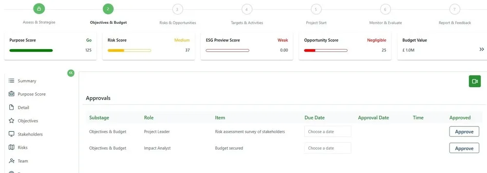 Access a live record of all Governance and RACI approvals needed before closing stage gateways.